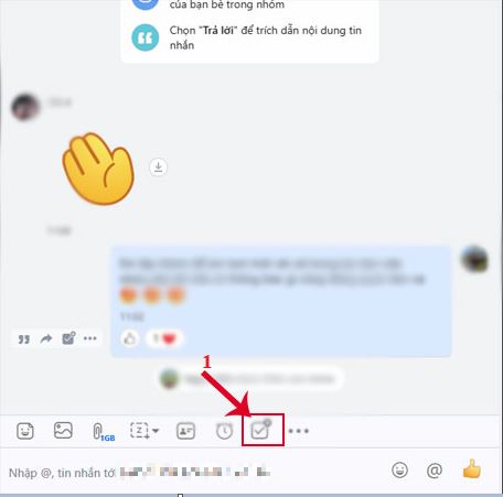 - Trong khung chat với người bạn muốn nhắc hẹn, chọn biểu tượng Nhắc hẹn có hình đồng hồ.