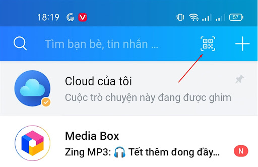 Nhấn vào biểu tượng quét mã QR của ứng dụng zalo trên điện thoại cần đăng nhập