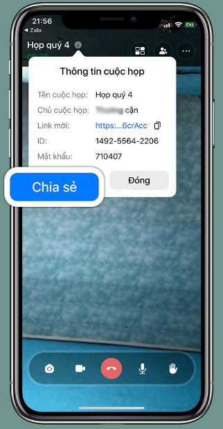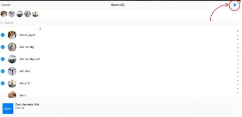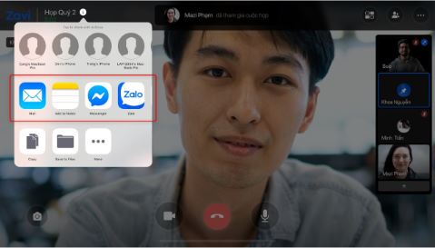 Nếu bạn muốn chia sẻ lên chat Za lo thì có thể chọn bạn bè bạn muốn mời vào cuộc họp, sau đó nhấn Gửi.
