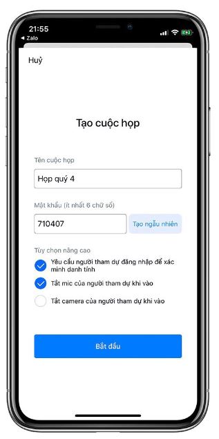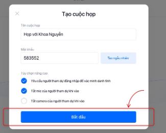 Nhấn Bắt đầu để hoàn tất tạo cuộc họp