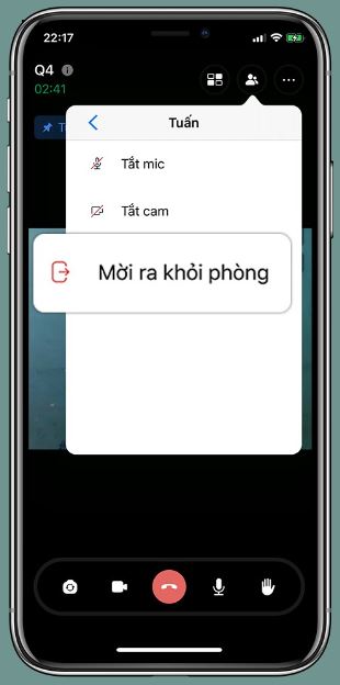 Hình ảnh tính năng Mời ra khỏi phòng khi họp